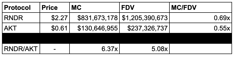 The market may have overvalued RNDR (only ~$200k annualized revenue in 2022), thus making AKT fairly priced.