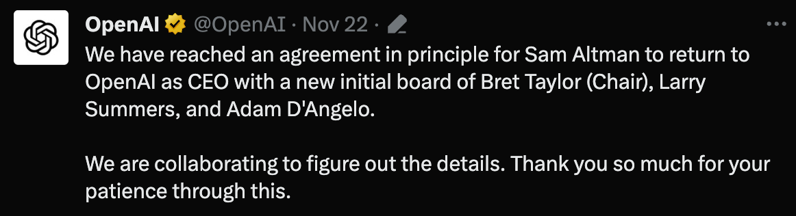 Note that you can click on the screenshots of each tweet in this newsletter to take you to the actual tweet.