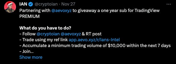 Partnering with Aevo to giveaway a one year sub for TradingView PREMIUM