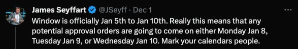 Window for ETF approvals is officially Jan 5th to Jan 10th