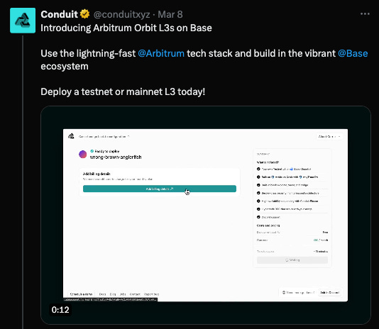 Deploy no-code Arbitrum Orbit Layer 3s on Base with Conduit