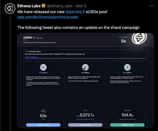Pendle launches new pools for Ethena’s sUSDe — Referral Link